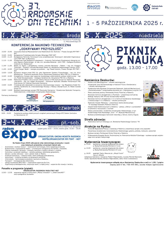 To cykliczna inicjatywa z ponad 30-letnią tradycją, która od lat promuje rozwój techniki, innowacyjności i edukacji technicznej w regionie radomskim oraz na całym Mazowszu. Radomskie Dni Techniki są przestrzenią dialogu i współpracy pomiędzy nauką, przemysłem, edukacją i samorządem.